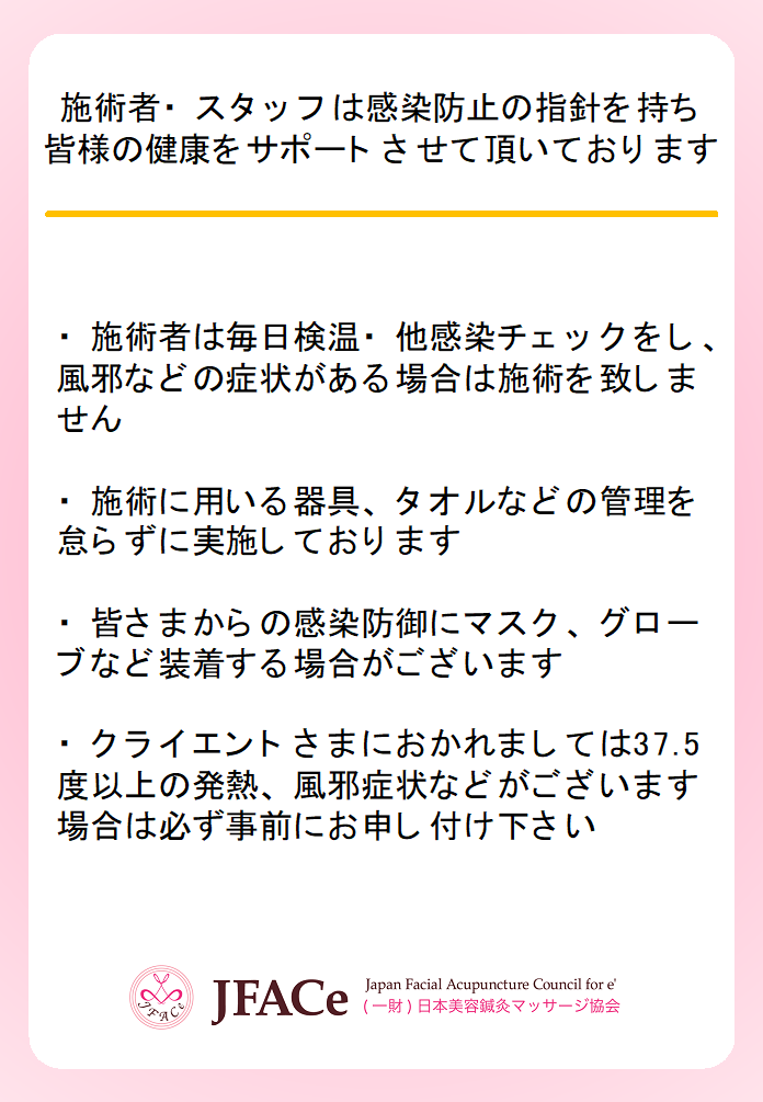 当院スタッフは出勤前(診療開始前)体温計測にて発熱のないことを確認し、勤務しております。
